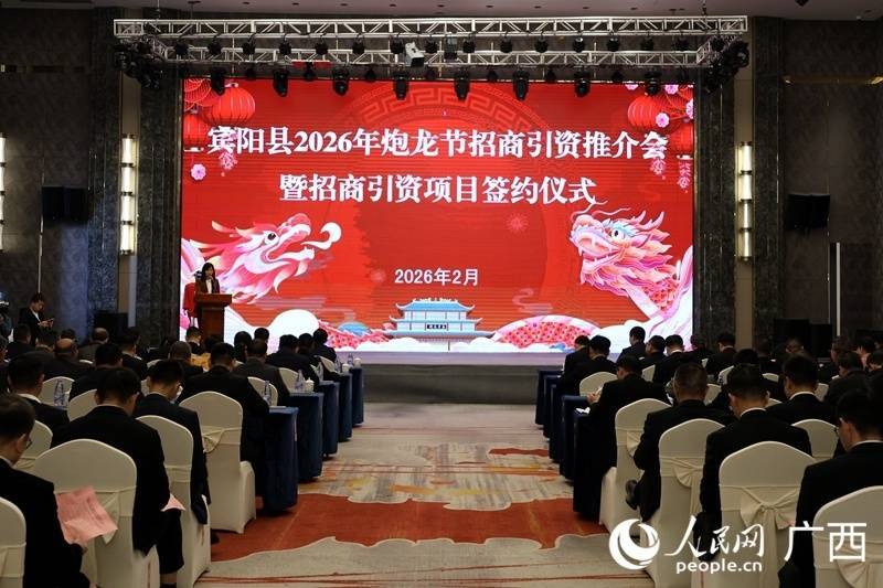 人民网宾阳2月27日电 (庞惠文)2月27日,宾阳县2026年炮龙节招商引资推介会暨招商引资项目签约仪式举行。活动现场老股民经验,13个优质项目集中签约,包括新能源电芯、农食AI科技等招商项目,总投资达79.7亿元。